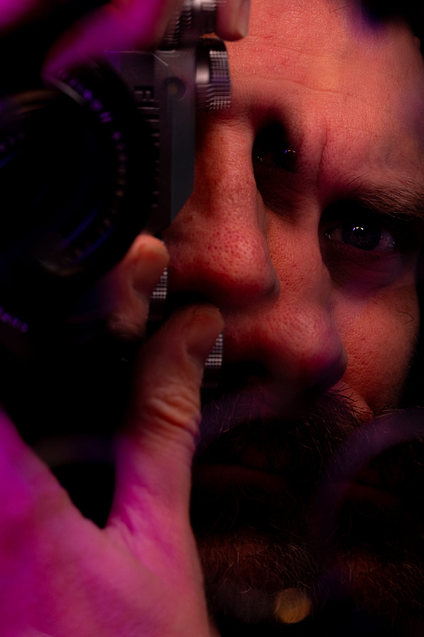 To achieve the self portrait, I laid an A4 sized mirror on a flat surface covered in a handful of randomly placed, smaller square mirrors. I then ducked and bobbed whilst firing off multiple shots until I had suitably exploded my face.